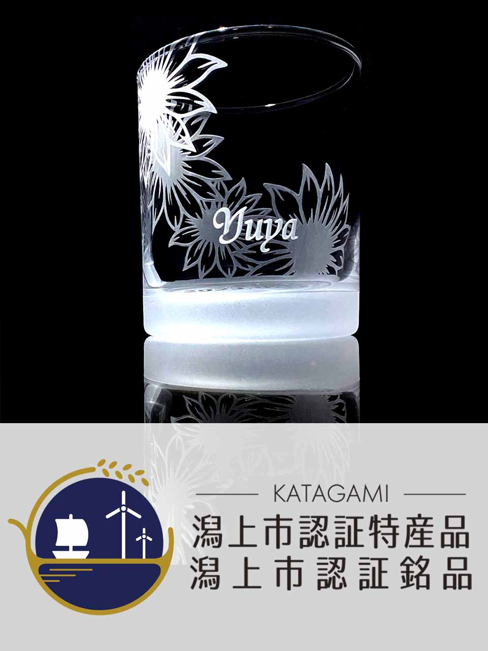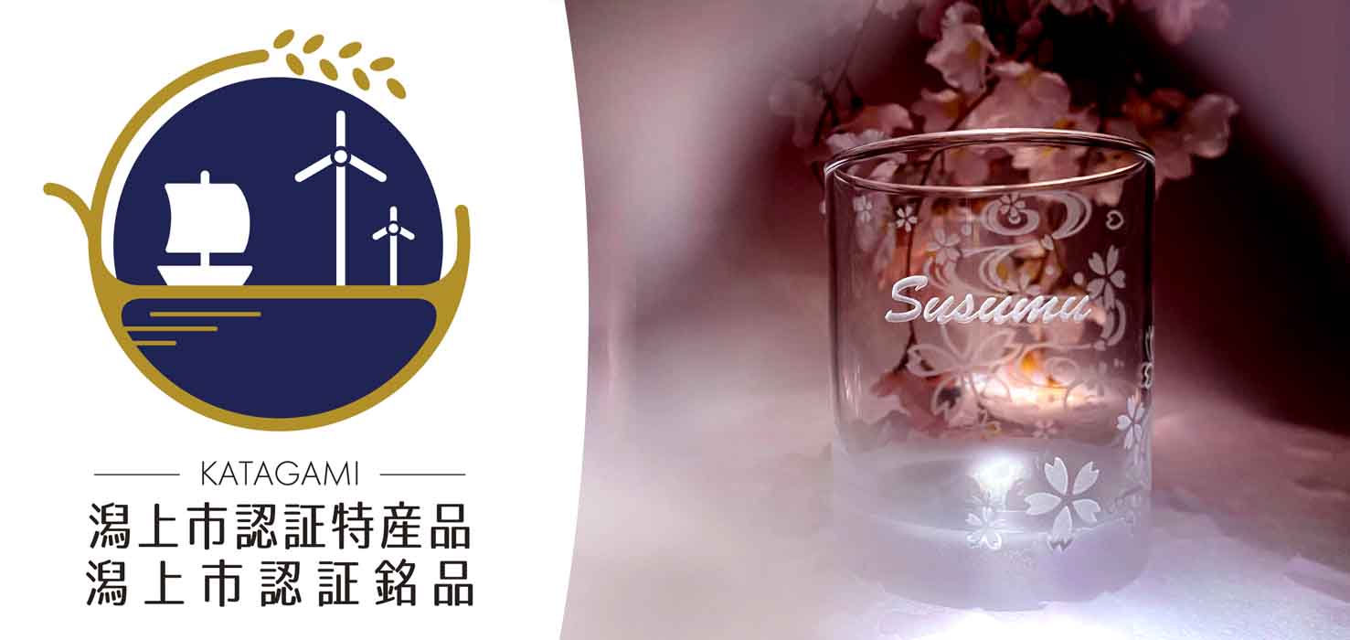 \当社の彫刻グラスが潟上市認証銘品に認定されました/