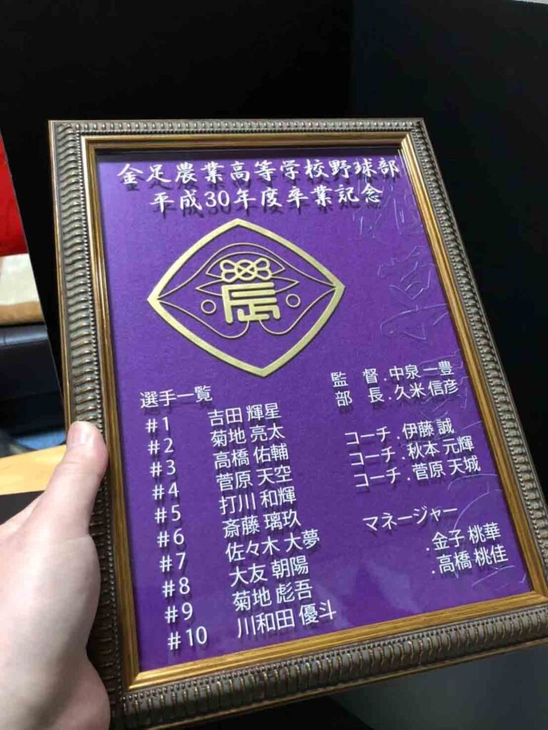 高校野球卒部の記念品として