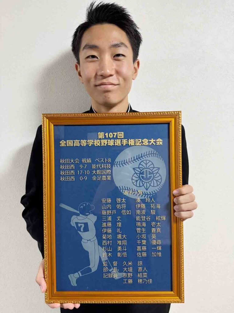 要望としては、とにかくカッコよく秋田西高カラーも取り入れてほしいと依頼し、長男本人のプレー中の写真を送信しました。